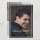 comemore seu formandos com este clássico cartão com fotos duplo. Este design de cartão de graduação tem anúncio no convite de janto de apresentação e graduação no verso. Você pode alterar a foto e outros detalhes clicando no link personalizar.