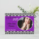 Este anúncio de Mais velho de fotos de preto e roxo, preto, adorável, 5x7, é uma tendência e chic. Ele é impresso em papel macio, vibrante e de peso de cobrir de 110 lb. Contém 50% de conteúdo de reciclado. Perfeito para seus convites mais formais e anúncios de eventos. Estes vêm com envelopes brancos padrão.