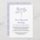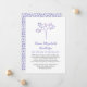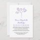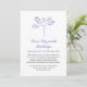 Anúncio memorial em branco e roxo, com uma árvore e fontes elegantes. A parte traseira apresenta um padrão correspondente.