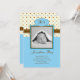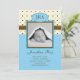 Anúncio feito sob encomenda moderno do nascimento para um menino. Adicione suas próprias foto e palavras. Caracteriza os monogramas das iniciais do bebê e um fundo bonito das bolinhas no azul e no marrom. Elegante contudo brincalhão.