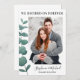 Este elegante Anúncio de Noivado apresenta a aquarela eucalipto e as palavras "Decidimos no Forever" Facilmente personalizável com sua foto, nomes e data. Desenho original © Michele Davies.