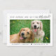 O anúncio moderno do noivado que mostra a foto de seus animais de estimação, "Our Humans Are Getting Casried" em uma mistura de simples tipografia e um roteiro de na moda, e seus primeiros nomes na frente; você pode personalizar para "My Humans" para um gato ou cão e adicionar sua localização e data de casamento, se desejar. No verso, personalize sua mensagem de lançamento do noivado, salve os detalhes da data e adicione seus nomes (e os nomes dos animais de estimação também) em um script semelhante a assinatura.