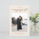 Estamos noivos! Anuncie seu noivado à família e amigos com este cartão de papelaria de lançamento personalizável do noivado de fotos. Ele apresenta uma escrita caprichosa e uma tipografia clássica. Este anúncio do noivado de fotos de terracota está disponível em outras cores. Personalize adicionando suas fotos, nomes e outros detalhes.