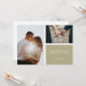 Este simples cartão de anúncio de noivado moderno apresenta duas fotos de sua escolha, um pouco de Sage Green como sotaque e texto mínimo na frente e atrás (exclua o texto de exemplo no verso se quiser deixar a parte de trás do vazio do cartão).