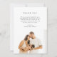 Este maravilhoso anúncio e cartões de agradecimentos elegante de chegada ao bebê apresenta duas fotos (uma de cada lado) e a tipografia clássica. Na frente, há um lindo anúncio de bebê recém-nascido que inclui uma mensagem de introdução, um nome, data de nascimento, altura e peso. A parte inferior apresenta a foto horizontal. A parte de trás apresenta um obrigado que você envia (você pode usá-lo para obrigado sobre presentes no chá de fraldas, e o cuidado e atenção que teve durante a gravidez). Há também uma segunda foto horizontal. Para personalizar este cartão, basta clicar no botão "Personalizar" e mudar todos os detalhes, incluindo fotos, para o seu.