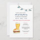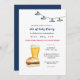 Convite para CHURRASCO no quintal de 4 de julho, com hambúrguer pintado à mão e ilustração de cerveja.