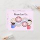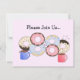 Um convite divertido, com um fundo moch com borrachas de chocolate. Uma variedade deliciosa de rosquinhas e duas xícaras de café a vapor... personalize com todas as suas informações conforme desejado.