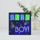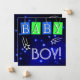 Anuncie a chegada de sua nova estrela ao mundo com estas lindas notícias estreladas com estrelas de tiro legal em um céu azul da meia-noite. Cada letra da palavra "Bebê" fica em uma etiqueta de papel azul ou verde em texto branco que adiciona a este anúncio exclusivo. Sala atrás para todas as suas informações personalizadas sobre o seu bebê no mesmo fundo estrelado.