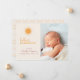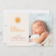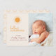 Este anúncio de natalidade de olá-olá-olá-olá-olá-olá-olá-olá-olá-olá-olá-Io-fofo mostra uma foto na frente e um espaço para a estatística do nome e da luz dos bebês. O dorso apresenta um simples padrão solar. Layouts adicionais disponíveis para incluir mais fotos na parte traseira.