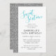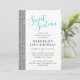 Convites de aniversário elegantes, modernos, bonito e simples de cinza prateada. Garota, mas não friamente, para uma celebração de aniversário de prata adolescente e azul-aqua. Mostrado para um doce aniversário de 16 anos, mas todo texto é editável para se adequar a qualquer convite de aniversário de 16 anos. ・ ・ ・ ・ ・ ・ ・ ・ ・ PERSONALIZAR TODAS AS TI clicando em "Personalizar Mais", incluindo: fontes, cor do texto, cor de fundo e posicionamento brilhante na frente e no verso. ・ ・ ・ ・ ・ ・ ・ ・ ・ ・ Verifique nossa coleção de designers para coordenar itens de decoração de festas de aniversário.