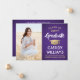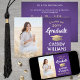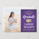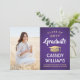 Compartilhe a alegria de uma formatura do ensino médio ou faculdade com esses anúncios personalizados em foto roxa, dourada e branca. (DICA DE POSICIONAMENTO DE IMAGEM: Uma maneira fácil de centralizar uma imagem exatamente como você deseja é cortá-la antes de fazer o upload para o site da Zazzle.) Este modelo é simples de personalizar com qualquer texto de sua escolha, como detalhes do convite da festa, nomes dos pais, honrarias especiais, título do diploma, citação inspiradora favorita, informações de contato do graduado, planos de educação futura ou nova posição de trabalho. Se houver algum texto que não seja desejado, basta excluí-lo. O design apresenta um fundo roxo degradê, um boné de formatura com efeito de folha de ouro, caligrafia estilizada manuscrita, tipografia minimalista moderna e uma foto de sua escolha, como uma foto de formatura ou imagem da cerimônia de formatura. Por favor, note que o dourado é uma cor impressa, não folha metálica. Esses cartões de anúncio de formatura são uma maneira moderna e elegante de