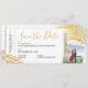 Folhas de palmeira de ouro tropicais (frondes) em uma simples, moderna e mínima foto de passagem de design, salve o cartão perfeito para um casamento na praia ou um casamento na ilha tropical. Adicione seu noivado ou foto favorita na frente e atrás. Todo texto pode ser personalizado, assim como o texto e a cor do plano de fundo. Use o Editor de Modelo da Ferramenta de Design para um controle completo do design.