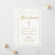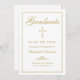 Envie a sua família e amigos um anúncio elegante de formatura cristã com um fundo branco com uma falsa caligrafia em ouro e cruzado com uma fina estrutura em ouro. Personalize com seus detalhes de graduação. Desenhada por Susan Coffey.