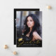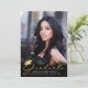 Anuncie o seu segundo grau ou formando universitário com este anúncio moderno com um elegante FORMANDO de tipografia de script manuscrito e 4 fotos (1 na frente e 3 na parte traseira) com um boné de formatura de folha de ouro falso ou quadro de papel. O verso foi projetado para incluir informações sobre as realizações, atividades e planos futuros de seu formando, conforme desejado. ASSISTÊNCIA: para obter ajuda sobre modificação ou personalização do design, alteração de cor, transferência do design para outro produto ou se você quiser coordenar itens, entre em contato com o designer ANTES DE ENCOMENDAR, através da guia MENSAGEM de bate-papo Zazzle ou por e-mail em makeitaboutyoustore@gmail.com.