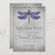 Personalize um anúncio de casamento único com uma Dragonfly Judaizada Salve a Data. O design de lançamento apresenta uma libélula com joias vibrantes contra um fundo listrado vintage. Salve ainda o anúncio de data disponível para este design em várias cores.
