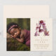 Dreamy Funny Bunny Romantic Floral A Initial in Burgundy & Gold Glitter Effect for Newborn Photo Announcement Card Design.