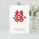 O caractere chinês "Dupla Felicidade" escrito xi ou "hsi" em mandarim e pronunciado "shuang-xi" é um caractere chinês bem conhecido usado tradicionalmente em casamentos chineses como um símbolo de amor, felicidade e sorte para o casal recém-casado. A cor vermelha é auspiciosa, bem como uma cor popular na cultura chinesa. Ela simboliza sorte, felicidade e alegria. O uso de fontes contemporâneas completa o design. Um design verdadeiramente adequado para qualquer celebração de casamento chinês.