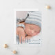 Compartilhe as boas notícias com sua família e amigos com este anúncio de nascimento que traz uma foto de bebê com olá em tipografia azul e branca empoeirada. O reverso é facilmente personalizado com o nome do bebês, o status de natalidade e uma mensagem pessoal dos pais. .