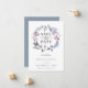 Coroa impermeável, Salve o Cartão de Data. Traços de coroa, flores delicadas e folhagem em tons poeirentos de azul, mauve, cinza e branco. A cor de apoio, mostrada em azul empoeirado, pode ser personalizada.