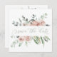 Um adorável Cartão de Anúncio para Salve a Data com flores cor-de-rosa rosa poeirento macio e folhas verdes de eucalipto e verde-verde. Você pode alterar o texto no verso do Menu Personalizar e personalizá-lo ainda mais com as ferramentas fornecidas. Você também pode escolher outros tipos de papel. Se precisar de ajuda e de outros produtos correspondentes, entre em contato comigo.