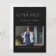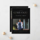 Este anúncio de graduação de fotos e a combinação de convite para festas de formatura são perfeitos para um formando se formar com um curso de enfermagem RN. A frente contém o anúncio de graduação e lê "Celebrando o GraduaçãoN de ..." destacando o RN na palavra graduação com uma letra de script elegante. O fundo preto com sotaques dourados cria um anúncio sofisticado e elegante de graduação em enfermagem. O verso desse anúncio de graduação inclui um convite para celebrar o formando em uma festa de formatura. O verso lê "eaRNed it" destacando o RN na frase juntamente com um espaço para duas fotos adicionais e os detalhes da festa, como data, hora, local e RSVP.