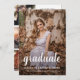 Este anúncio e convite moderno de graduação permite destacar suas fotos favoritas. Com um preenchimento de gradiente no fundo, o script branco se destacará sobre qualquer foto. O verso é perfeito para listar os detalhes da cerimônia ou dar uma visão geral de seus planos do ano passado ou futuros.