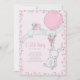 Um coelhinho está a caminho do anúncio de gravidez! O design é emoldurado por flores rosadas e descartáveis e apresenta um belo coelhinho com um pequeno buquê e um balão cor-de-rosa voando com uma faixa verde-menta, escrita com IT'S A GIRL, e decorada com um passarinho. Este cartão giro bonitinho tem uma paleta cor rosa e verde-menta gentil e a parte de trás do anúncio de gravidez tem o mesmo padrão floral caprichoso.
