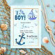 É um Anúncio de Nascimento Náutico de Menino - Tema de veleiro e âncora Bem-vindo ao seu pequeno marinheiro em estilo com este charmoso anúncio de nascimento náutico! Apresentando ilustrações com cores aquáticas moles de um veleiro, âncora, ondas, marinho clássico e tons azuis para bebês, este cartão é a maneira perfeita de compartilhar suas notícias alegres. Totalmente personalizável, você pode adicionar o nome do seu bebê, data de nascimento, peso, para torná-lo exclusivamente seu. Ideal para famílias que amam o oceano ou qualquer pessoa que planeje um berçário de temas náuticos ou uma celebração de bebês.