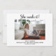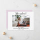 Ela fez um Simples Anúncio de Graduação de Foto em Formando. Anúncio simples e moderno de graduação de fotos para a classe de 2021, escola virtual pandêmica - adicione sua foto de um formando em casa. Personalize todo o texto do cartão. A parte de trás é rosa-pincelado.