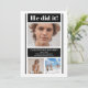 Anúncio simples, clássico e moderno de "Ele Fez!" de graduação de garoto preto e branco. Design composto por Holiday Hearts Design (direitos reservados).