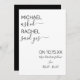 Este elegante e simples anúncio de noivado é perfeito para qualquer casal moderno. Apresenta a frase "(Nome) perguntou, (Nome) disse sim", em uma tipografia cursiva manuscrita preta sobre um fundo branco. É minimalista, elegante e único; o design perfeito para enviar aos amigos e familiares.