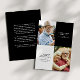 Modern death announcement card with photo collage and custom text offers a warm and respectful way to notify friends and family of a loved one’s passing. This professionally designed card features a four-panel layout with space for two full-color photos, the individual's name, birth and passing dates, and a short tribute message. The reverse side provides space for a formal death announcement, including details of a memorial service, surviving family members, or any other information. The combination of black and white backgrounds with classic serif typography adds a timeless and elegant touch. Ideal for mailing or sending digitally to extended family, friends, or members of the community, this customizable death notice card is a meaningful way to honor someone's memory with clarity and care while sharing important details with those who knew them.
