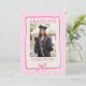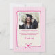 Elegant Pink Stripes Bow Frame Graduation Photo Announcement.