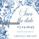 Anúncio Elegant Royal Blue Toile Save the Date Wedding Car
