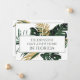 Um buquê exuberante de folhas tropicais verdes e douradas dá a notícia, mesmo antes que os destinatários leiam o texto na parte frontal do cartão de anúncio de novo endereço: você tem uma nova casa na Flórida. Usamos uma fonte serifada sofisticada chamada Cinzel para combinar com a grandiosidade das flores na frente do cartão e também levamos o tema para o verso. Todo o texto na frente e no verso deste cartão pode ser facilmente personalizado com suas próprias informações de contato, substituindo o texto de exemplo usando o modelo de personalização. Parte da nossa Coleção de Mudança de Endereço da Flórida, um cartão-postal de mudança de endereço também está disponível neste design, bem como um rótulo de endereço de devolução coordenado.