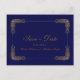 Um cartão postal de salvar a data elegante e personalizável com renda dourada e azul.