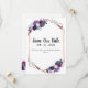 Save the Date Flores Roxas Romântico para o anúncio do seu dia especial. Parte da coleção de casamento roxo. Para personalização avançada, clique no botão "Personalizar" acima. Itens correspondentes disponíveis