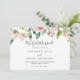 Este elegante anúncio de elopemento floral no outono tem um belo design moderno. Os design ilustram rosas rosa, pinceladas e brancas, peônias com folhagem verde agrupadas em buquês, acentuando as lindas cores de queda. Personalize a placa com os detalhes do seu casamento e use a modelo na parte traseira para anunciar uma alteração de endereço, informações de recepção ou quaisquer outros detalhes que você gostaria de compartilhar.
