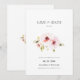 Um cartão de datilografia elegante com flores aquáticas delicadas em tons pastéis macios. A elegante tipografia e o layout minimalista criam um sentimento sofisticado e romântico, perfeito para anunciar seu dia especial. Totalmente personalizável com nomes, data e detalhes pessoais.