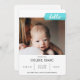 O Elegante Anúncio de Nascimento do Bebê com Colagem de Fotos Teal Washi Tape é um design contemporâneo que é simples mas bem equilibrado. A frente tem uma foto "gravada" com fita de washi em azul e a palavra olá. Abaixo da foto está o nome do bebê, as estatísticas de nascimento e a mensagem de boas-vindas da família. As costas têm uma grande colagem de 6 fotos quadradas para mostrar todos os momentos mais doces desde a chegada do novo bebê em sua vida.