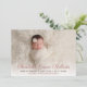 Cartão de anúncio de nascimento com foto simples e doce apresenta sua linda bebê recém-nascida com uma foto de paisagem na frente e uma foto quadrada extra no verso. A elegante escrita em marsala exibe o nome completo do bebê com detalhes do nascimento e uma mensagem "Recebida com Amor" abaixo. Um padrão de bolinhas brancas abstratas em um fundo rosa poeira veste o verso deste design de dois lados. A cor do fundo do verso pode ser modificada para combinar com suas fotos. Todo o texto é totalmente personalizável.