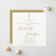 A assinatura de ouro Elegante da Primeira Comunhão salva o convite de data que contém um nome de assinatura de script de ouro elegante. Personalize com suas informações especiais sobre eventos em letras de ouro em chic neste design neutro por gênero. Projetado por Thisnotme©