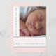 Elegante e na moda cor-de-rosa, as cinzas lixaram o anúncio de nascimento de uma menina simples apresentando um padrão listrado com rosas claro e listras brancas, os detalhes de nascimento do seu bebê numa banda branca com contorno de cinza e a foto do bebê. Este modelo moderno personalizável é excelente para anunciar o parto da menina do seu bebê.