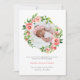 Cartão de modelo de anúncio de nascimento floral de bebê, cor-de-rosa, brilhante e elegante, com ilustrações florais de pénia rosa pincelada e folhagem de folha verde na frente. O verso revela um fundo de bolinhas rosa. Na frente, uma foto do seu recém-nascido que pode ser adicionada a esta placa. Use uma imagem de tamanho quadrado para facilitar o ajustado. Cartão perfeito para anunciar a chegada do seu novo bebê com as estatísticas de nascimento. Excelente para o bebê e para a menina. Perfeito para as estações de verão e primavera!
