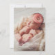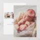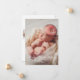 Anuncie o nascimento da sua menina com este elegante cartão de anúncio de nascimento com múltiplas fotos. A frente exibe sua foto favorita do recém-nascido com o nome do bebê em uma fonte cursiva branca, detalhes do nascimento e um floreio delicado. A parte traseira apresenta um design branco limpo com espaço para três fotos adicionais e uma mensagem "Com Amor" dos orgulhosos pais. Todas as cores do texto e do fundo são totalmente personalizáveis para complementar suas imagens.