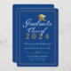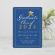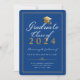 Anuncie seu formandos em estilo com esta elegante classe personalizada de formando 2023. Esta design de tipografia formal apresenta as palavras Classe de Formando de 20XX com seu grau, nome, escola e data para personalizar em ouro e roteiro branco, acentuado por um boné de formando de ouro falso e emoldurado em ouro sobre fundo azul real. A parte de trás do cartão é azul real. Desenhada por Susan Coffey.
