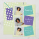 Estes anúncios de graduação do ensino fundamental e caprichoso apresentam um design espiritual, lavanda e limão com marcadores para três de suas fotos favoritas, o nome do formando, o ano e a escola.