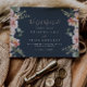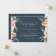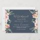 Este anúncio do elopemento floral do rosa de jardim de eucalipto tem um belo design moderno. A design apresenta flores rosa, pinceladas, amarelas, com folhas de eucalipto em fundo azul-marinho escuro. Personalize a placa com os detalhes do seu casamento e use a modelo na parte traseira para anunciar uma alteração de endereço, informações de recepção ou quaisquer outros detalhes que você gostaria de compartilhar.