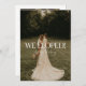 Cartão de Anúncio de Casamento de 2 Fotos do Script Moderno. Personalize com 2 das suas fotos favoritas de casamento na frente e atrás, noiva e nomes de noivas em letras elegantes de script, e sua mensagem de elopemento para amigos e familiares nas costas.