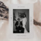 Anúncio de casamento de fotos brancas pretas com 'Recem casados' mínimo. Personalize este cartão de anúncio do elopemento de casamento moderno e clássico com noiva e nomes de noivos, sua data de casamento, sua localização e sinta-se livre para personalizar o "recem casados" com sua própria redação, como "nós amarramos o nó" ou "nós fugimos!" Este item também inclui dois slots de fotos personalizadas para suas fotos favoritas de casamento de você e seu parceiro. Personalização completa com a sua própria mensagem de controle no verso.